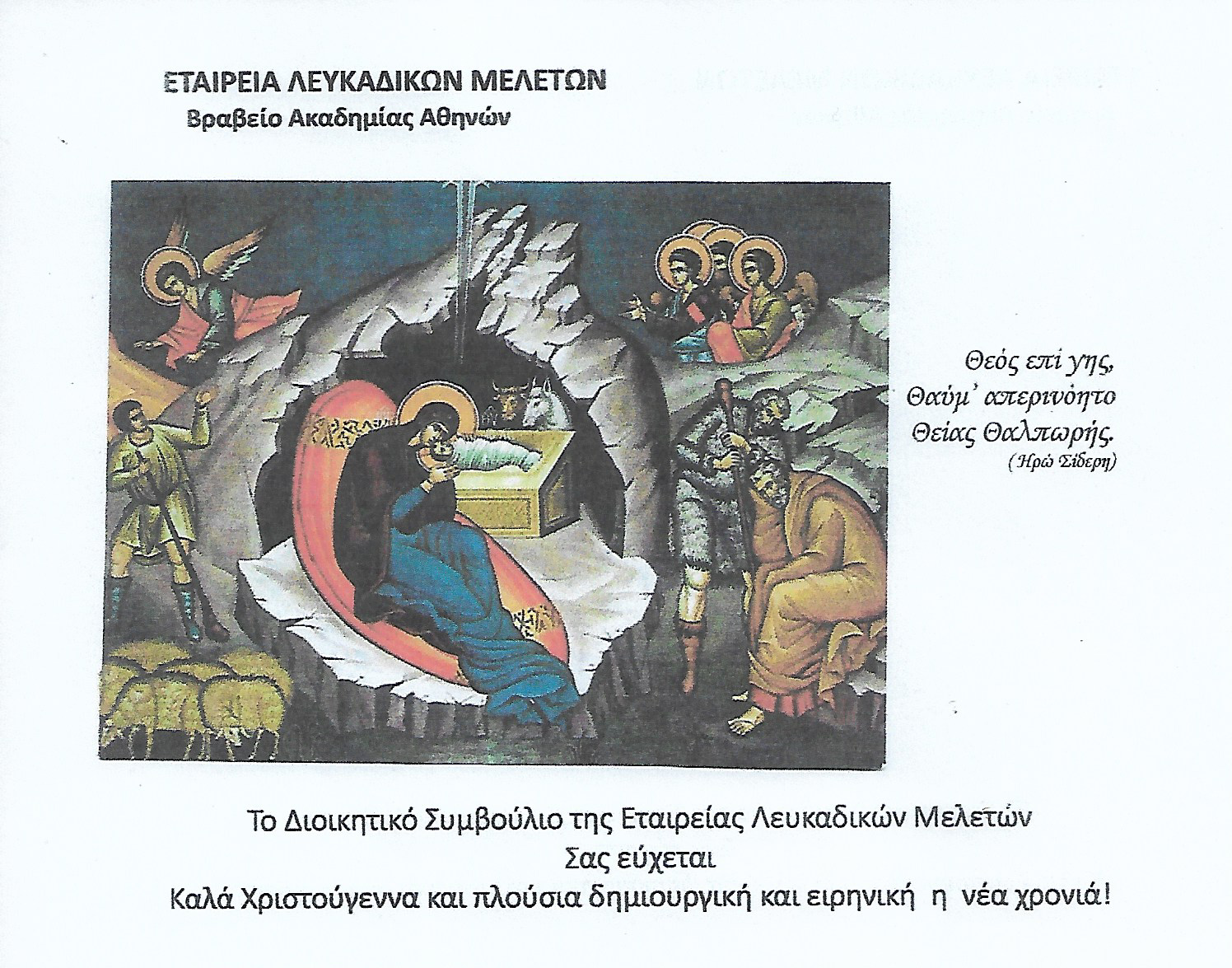 Το Διοικητικό Συμβούλιο της Εταιρείας Λευκαδικών Μελετών σας εύχεται Καλά Χριστούγεννα και πλούσια, δημιουργική και ειρηνική η νέα χρονιά!