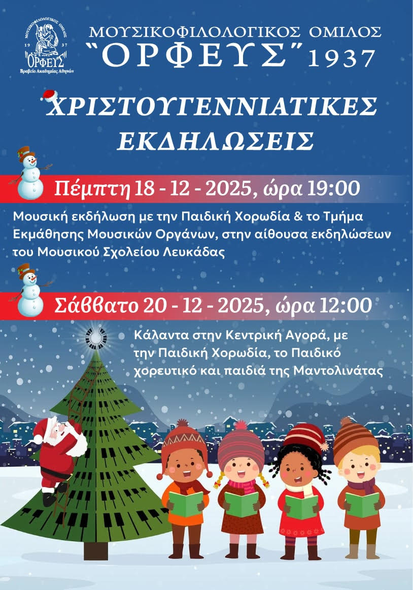 Χριστουγεννιάτικες εκδηλώσεις και δράσεις του «Ορφέα» Λευκάδας
