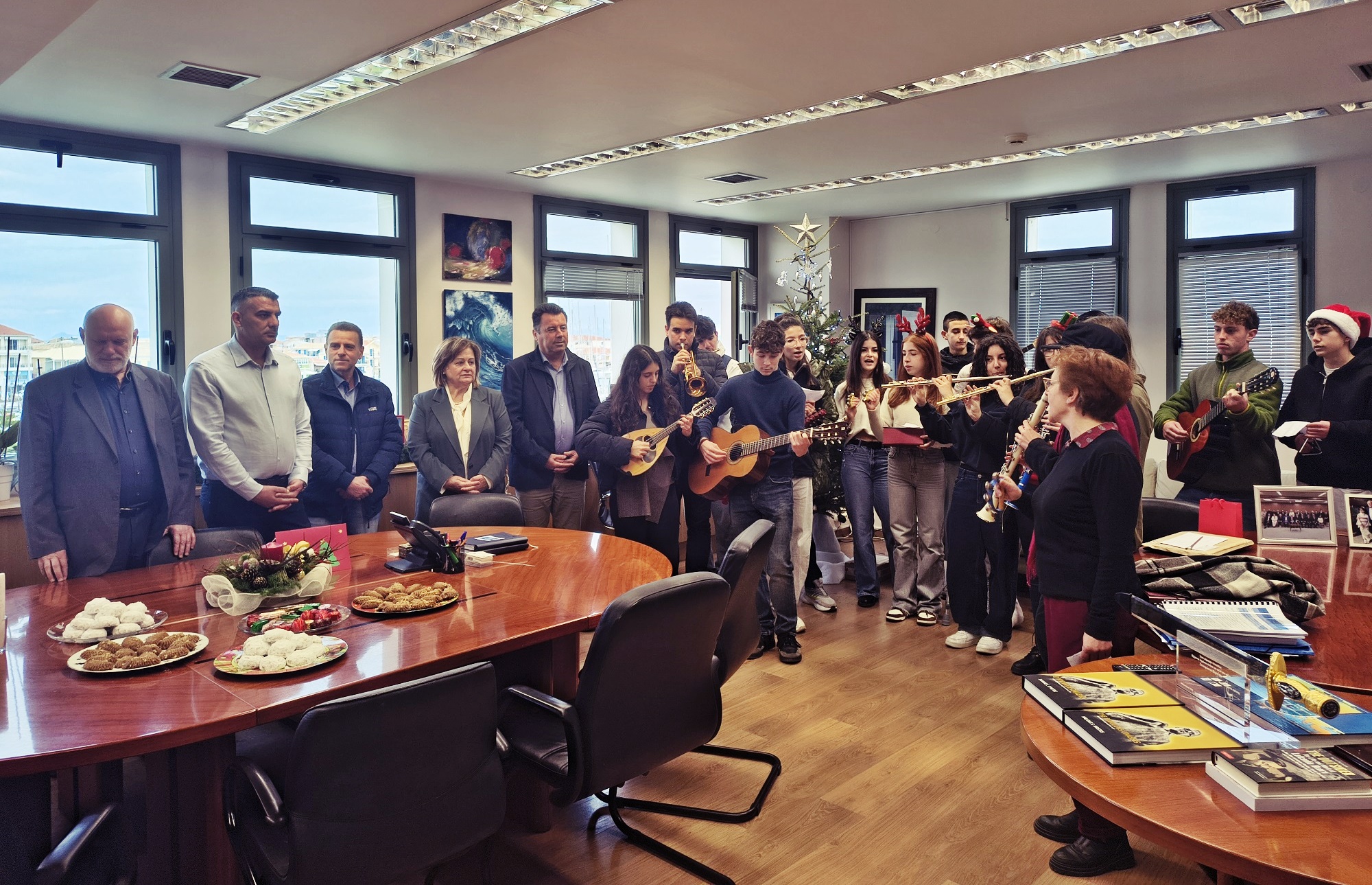 Τα Χριστουγεννιάτικα κάλαντα έψαλαν μαθητές της Α΄ Λυκείου του Μουσικού Σχολείου Λευκάδας