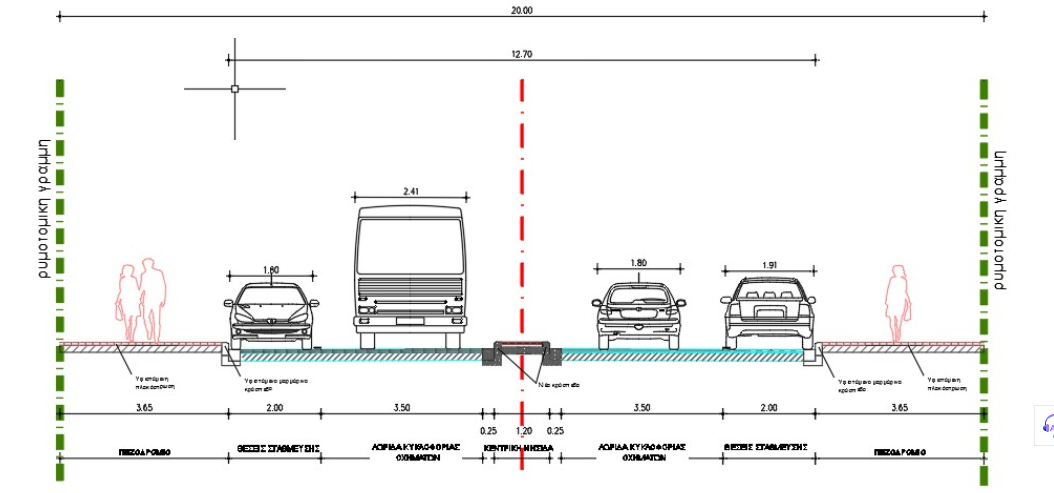 Σύμφωνα με τη μελέτη, το συνολικό μήκος της παρέμβασης ανέρχεται σε 1.075 μέτρα, από τη Χ.Θ. 0+240 έως τη Χ.Θ. 1+315 (το σύστημα χιλιομέτρησης που εφαρμόσθηκε είναι τοπικό για τις ανάγκες της μελέτης), καλύπτοντας ουσιαστικά όλο το πυκνοκατοικημένο τμήμα του οικισμού, από την είσοδο έως την έξοδό του. Δηλαδή από την περιοχή «Λιμνί» μέχρι την στροφή στου «Μαυρογιάννη». Η κεντρική νησίδα αποτελεί το βασικό στοιχείο της κυκλοφοριακής αναβάθμισης, καθώς εκμεταλλεύεται το επαρκές πλάτος του οδοστρώματος και τοποθετείται με λειτουργικές και ασφαλείς διαστάσεις.