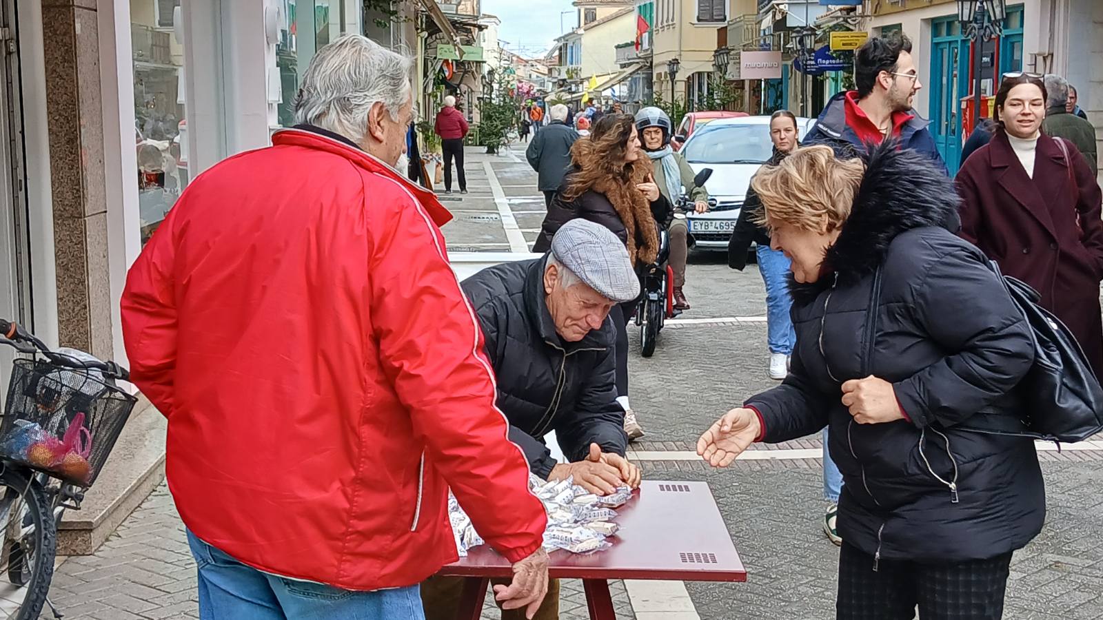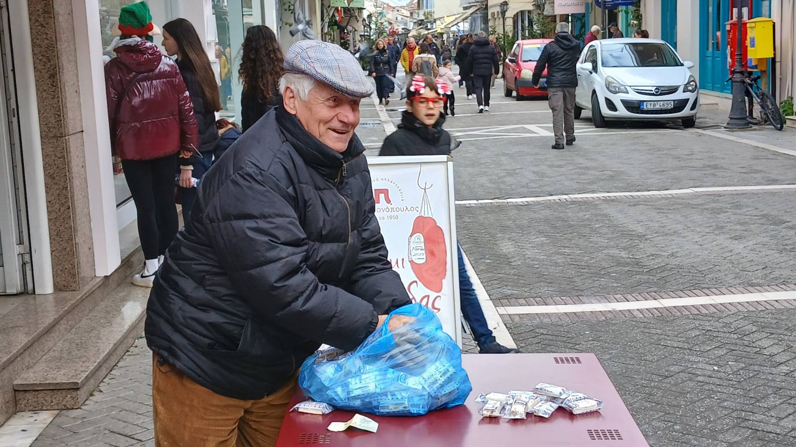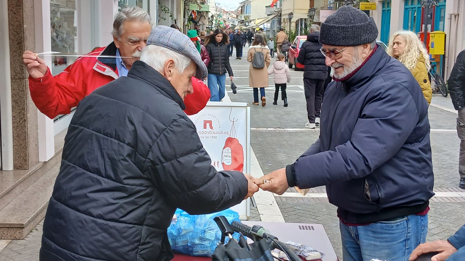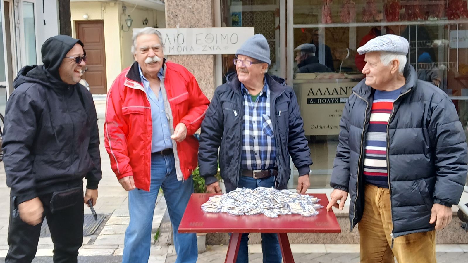 Περαστικοί κάθε ηλικίας κοντοστέκονταν, άλλοι από περιέργεια κι άλλοι από νοσταλγία, για να δοκιμάσουν την τύχη τους στο παλιό αυτό παιχνίδι που συνόδευε επί δεκαετίες τις παραμονές της Πρωτοχρονιάς. Το «μονά–ζυγά» δεν είναι απλώς ένα τυχερό παιχνίδι· είναι μια κοινωνική στιγμή, μια αφορμή για χαμόγελα, πειράγματα και ευχές για καλοτυχία στον καινούργιο χρόνο.