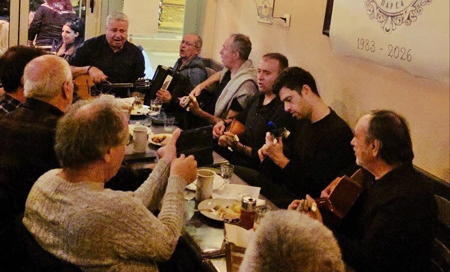 Η Αγιομαυρίτικη παρέα την Κυριακή 4-1-2026 στο ζεστό και φιλόξενο χώρο του παραδοσιακού καφενείου «Καλογιάννος» (τον οποίο ευχαριστούμε για την φιλοξενία) σε μια όμορφη και ζεστή βραδιά μαζί με φίλους τίμησε με τον δικό της μουσικό τρόπο τον ιδρυτή της Θανάση Σίδερη που πρόσφατα έφυγε από την ζωή.