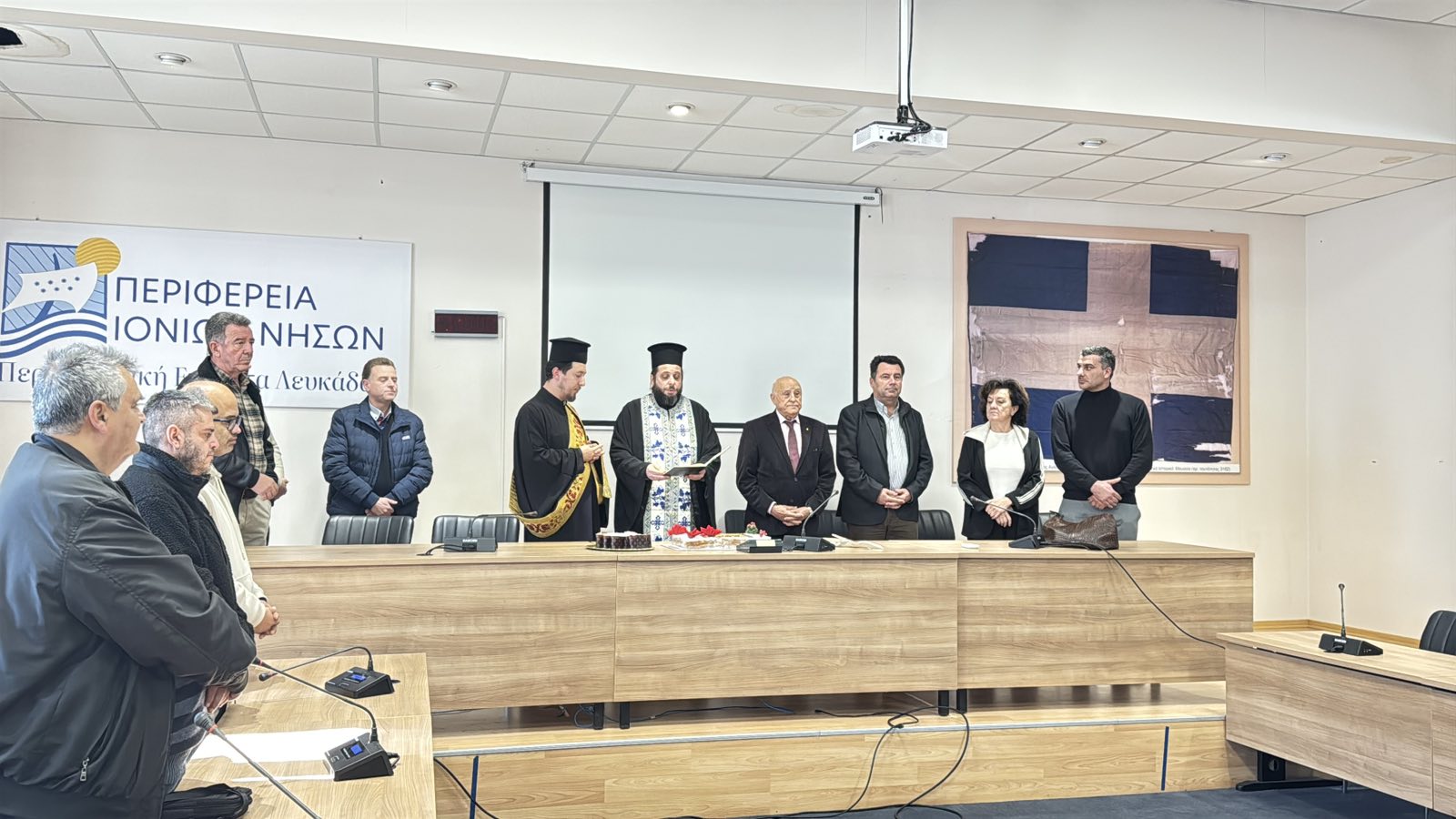 Την πίτα ευλόγησε ο εκπρόσωπος του Μητροπολίτη Λευκάδος και Ιθάκης, κ. κ. Θεόφιλου, Γενικός Αρχιερατικός Επίτροπος, Πατέρας, Αθανάσιος Κοσμάς, ο οποίος ευχήθηκε καλή χρονιά με υγεία και ευλογία, ενώ μετέφερε τις πατρικές ευχές του Σεβασμιοτάτου Ποιμενάρχη μας προς όλους και ιδιαίτερα προς τη Δημοτική Αρχή και τους εργαζόμενους, ώστε με επιτυχία να επιτελέσουν και το 2026 το υπεύθυνο έργο τους.