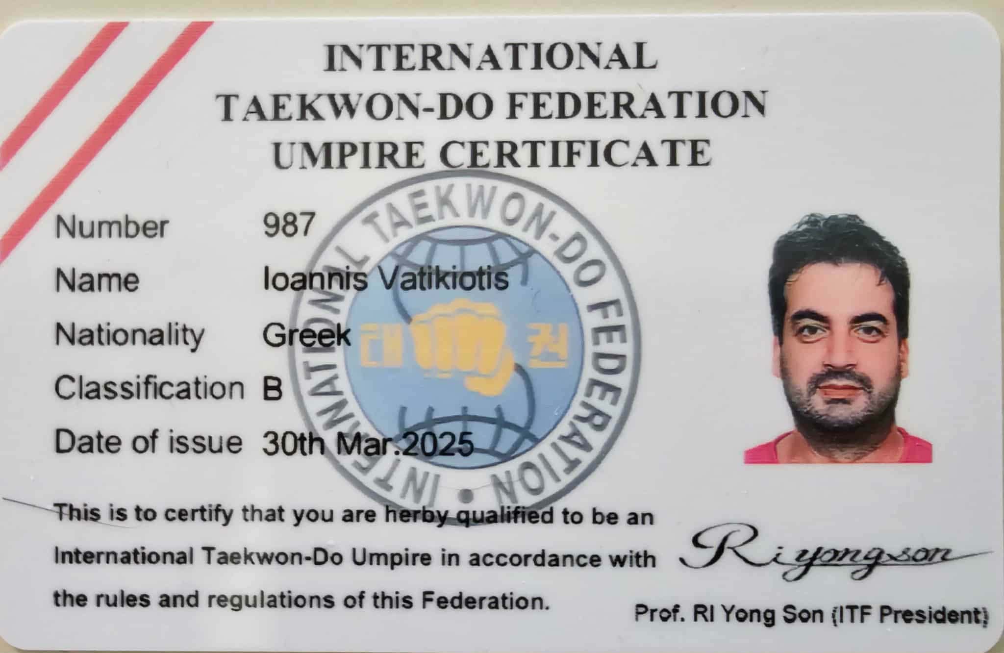 Το ΔΣ του Σωματείου ΑΓΑ Εύαθλος Λευκάδας συγχαίρει τον αθλητή του συλλόγου και διαιτητή ΤΑΕΚΒΟΝΤΟ Βατικιώτη Ιωάννη, για το διεθνές πτυχίο διαιτησίας.