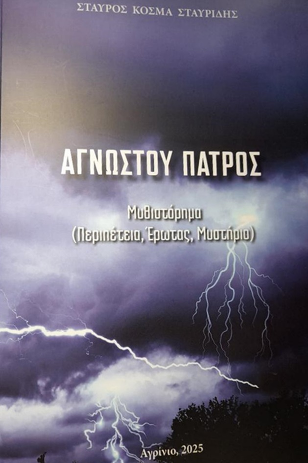 Διάβασα πρόσφατα ένα ακόμη βιβλίο του Αγρινιώτη Λογοτέχνη Σταύρου Κ. Σταυρίδη με τίτλο «ΑΓΝΩΣΤΟΥ ΠΑΤΡΟΣ». Πρόκειται για αξιόλογο κοινωνικό μυθιστόρημα, που κυκλοφόρησε το 2025 και είναι εμπνευσμένο από το διήγημά του «Εις το Όνομα του Πατρός», που περιλαμβάνεται στη συλλογή «Πάντα μες τη νύχτα ένας άγγελος» (εκδόσεις Δαρδανός, 2001). Ο Σταύρος Σταυρίδης έχει εκδώσει άλλα 20 βιβλία και εργάστηκε στην ιδιωτική εκπαίδευση ως καθηγητής Αγγλικών.