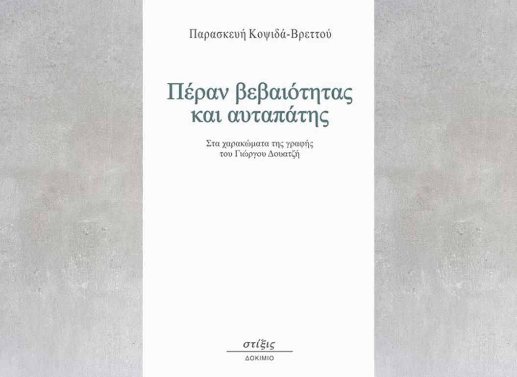 Κυκλοφόρησε πρόσφατα (Οκτώβριος 2025) από τις ποιοτικές εκδόσεις Στίξις η φιλολογική μελέτη της Παρασκευής Κοψιδά-Βρεττού, με τίτλο: Πέραν βεβαιότητας και αυταπάτης-Στα χαρακώματα της γραφής του Γιώργου Δουατζή. Όπως και ο υπότιτλος αποκαλύπτει, πρόκειται για την ανατομία του έργου του ποιητή, δοκιμιογράφου, μυθιστοριογράφου, θεατρικού συγγραφέα και γνωστού δημοσιογράφου Γιώργου Δουατζή. Από τους πρωταγωνιστές, κατά την πρώιμη δεκαετία του 1970, των πρώτων ειδησεογραφικών προσωπικοτήτων της ΕΡΤ, ο Γιώργος Δουατζής θα διακριθεί σε πολλούς δημοσιογραφικούς ρόλους σε εφημερίδες, περιοδικά, ραδιοφωνικούς και τηλεοπτικούς σταθμούς ως ρεπόρτερ, αρθρογράφος, πολιτικός αναλυτής, διευθυντής και συστηματικός αρθρογράφος. Οι σπουδές του στην Ανωτάτη Βιομηχανική Σχολή της Θεσσαλονίκης και στο VIII Πανεπιστήμιο του Παρισιού, στο πεδίο της Κοινωνιολογίας, τού έχουν προσπορίσει ένα σημαντικό ακαδημαϊκό υπόβαθρο για τις γραφές του.