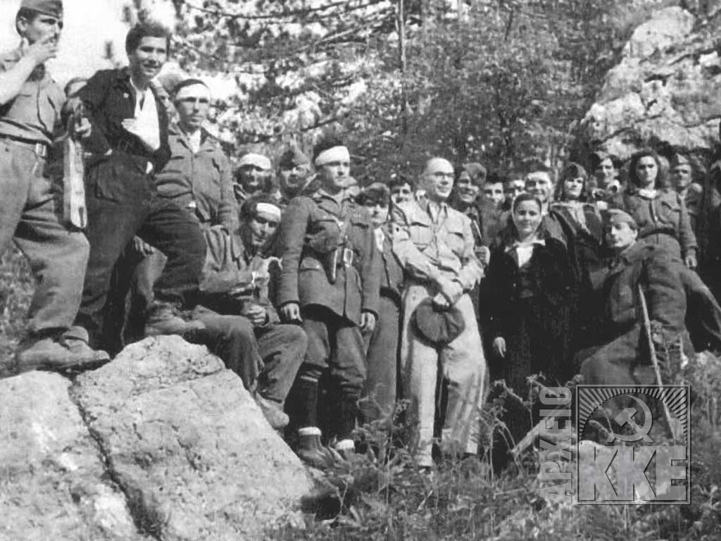 Ο γιατρός του ΔΣΕ, Πέτρος Κόκκαλης μαζί με τραυματίες μαχητές (Αρχείο ΚΚΕ)