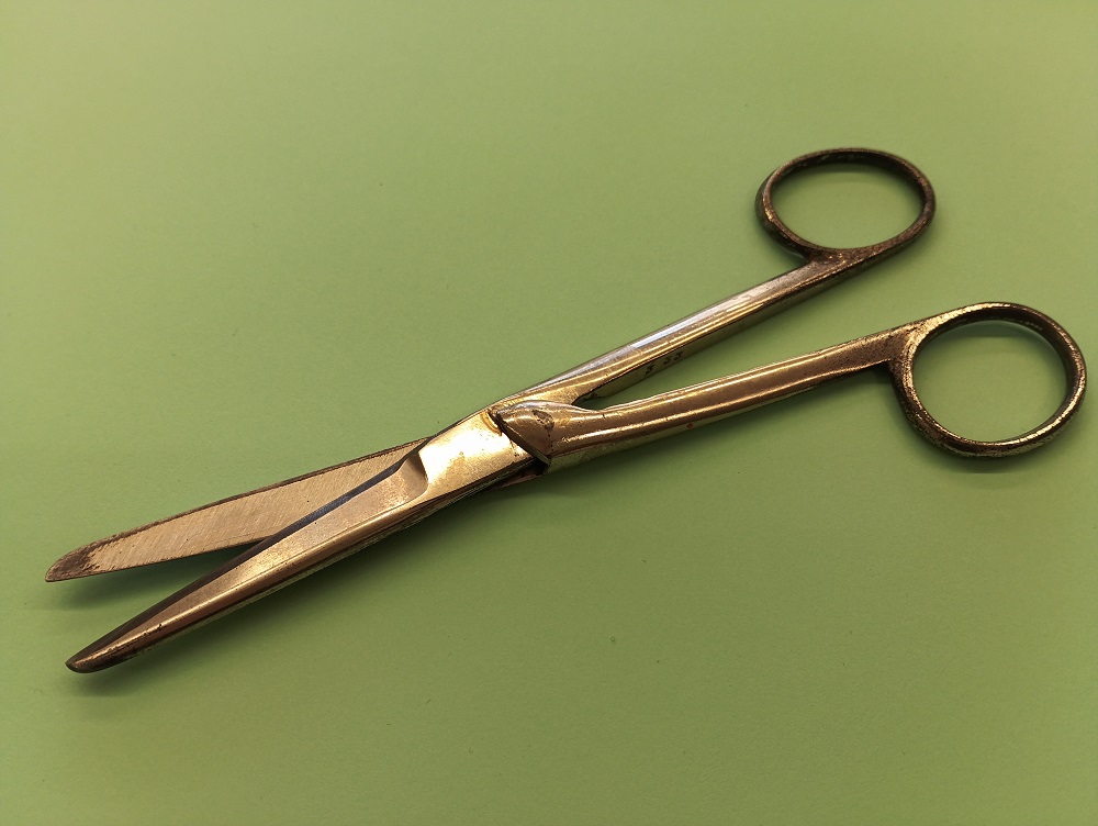 Ψαλίδι που χρησιμοποιούσε η μαχήτρια του ΔΣΕ Βαγγελιώ Μελιτζανά, ως νοσοκόμα στο υγειονομικό τμήμα του ΔΣΕ για ιατρικές πράξεις και επεμβάσεις (Αρχείο ΚΚΕ)