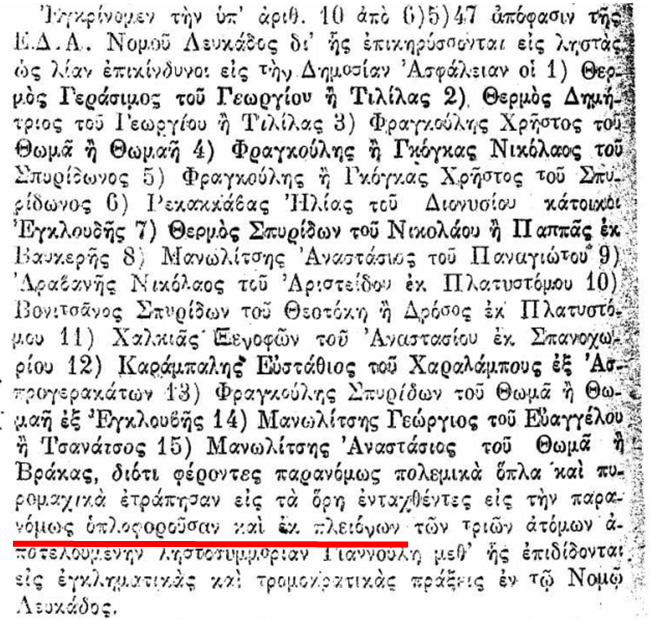 3_arxhgeio_dse_Lefkadas_AkarnaniasΕπικήρυξη καταδιωκόμενων αγωνιστών. Αριθ. 44)486)10 (22 Ιουλίου 1947).
