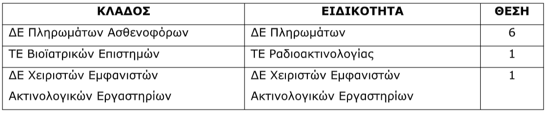 Η προκήρυξη αφορά συνολικά 1.696 μόνιμες θέσεις ΤΕ και ΔΕ σε όλη τη χώρα.
