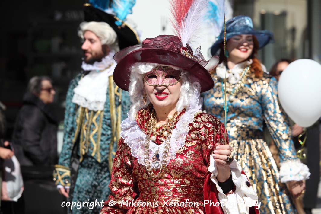 Οι «Βενετσιάνες του Πόντε» διέσχισαν την κεντρική αγορά, μετατρέποντας το εμπορικό κέντρο της πόλης σε μια ζωντανή σκηνή καρναβαλικού θεάτρου, με τον κόσμο να συμμετέχει και να φωτογραφίζει κάθε στιγμή.
