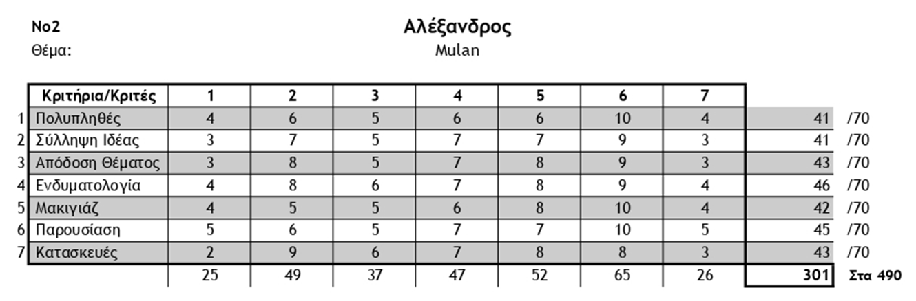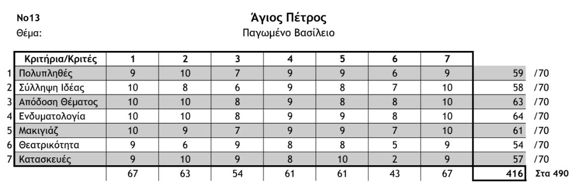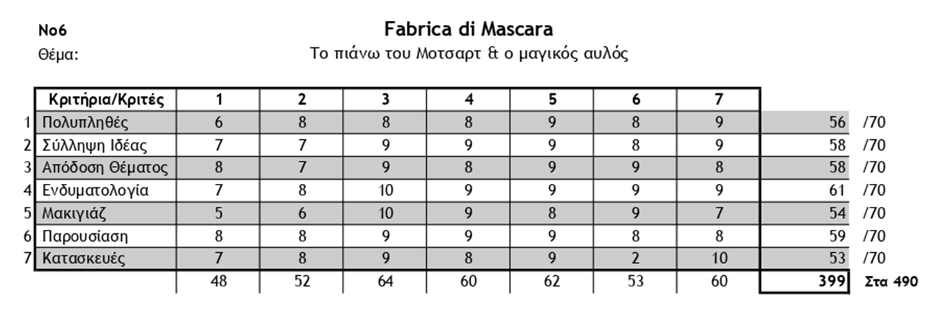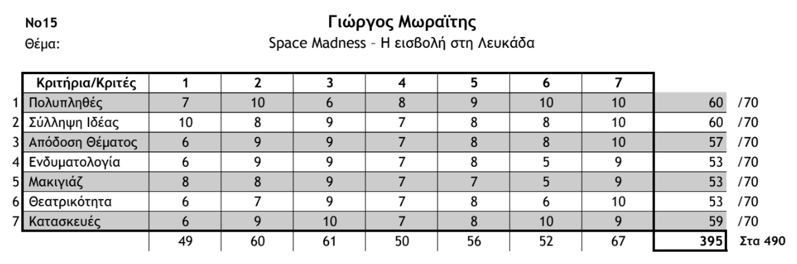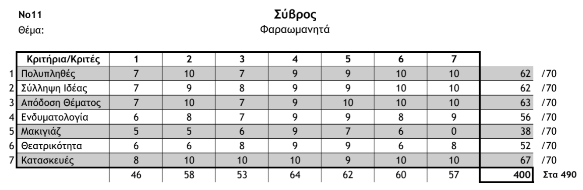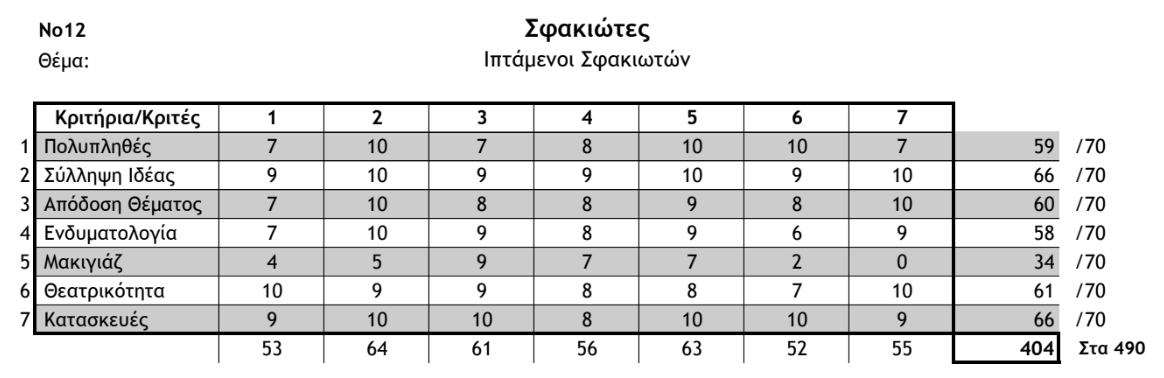 Συνημμένα: Οι αναλυτικές βαθμολογίες της Επταμελούς Κριτικής Επιτροπής.