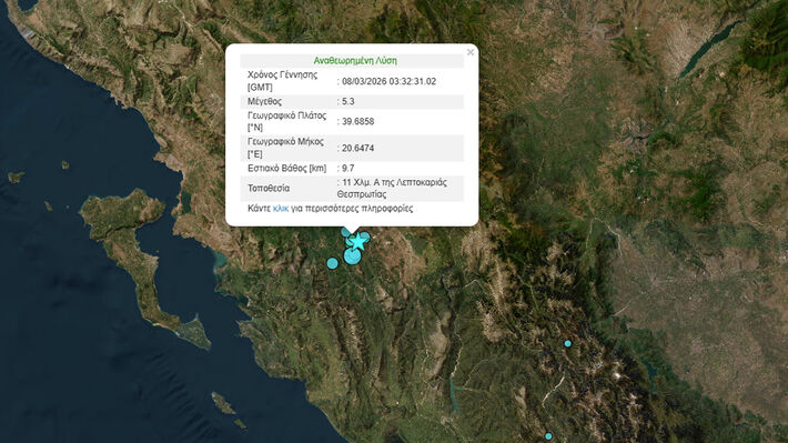 Σεισμός 5,3 Ρίχτερ στη Θεσπρωτία – Αισθητός σε Κέρκυρα, Λευκάδα και Πάτρα