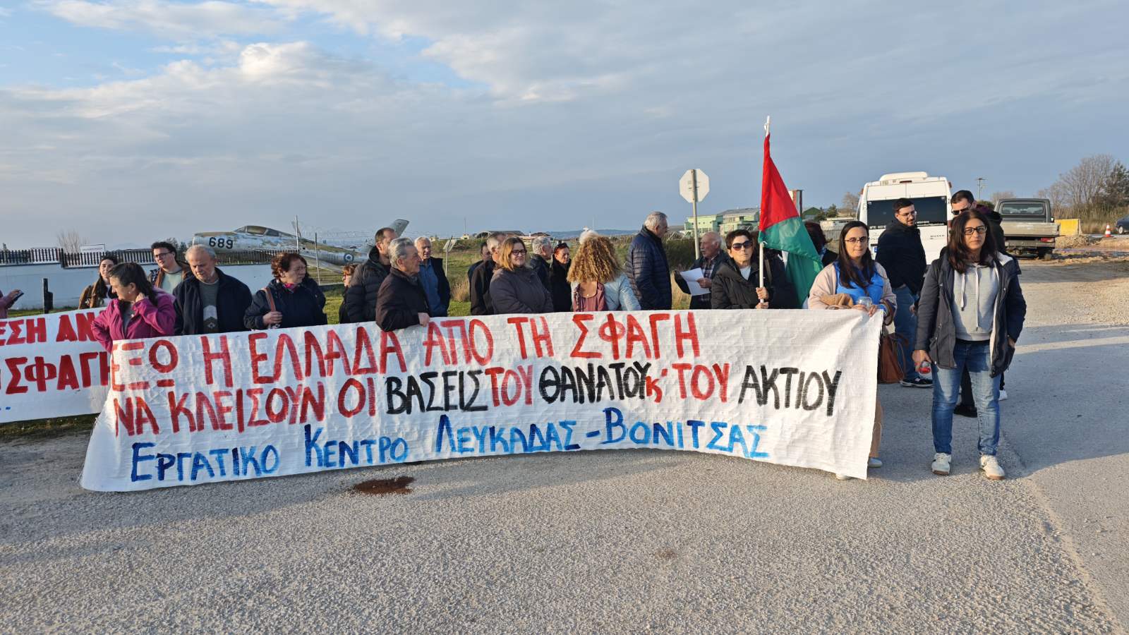 Μαχητική κινητοποίηση πραγματοποιήθηκε έξω από την πύλη της ΝΑΤΟικής βάσης του Ακτίου, από εργατικά σωματεία, μαζικούς φορείς και εργαζόμενους από την Πρέβεζα και τη Λευκάδα, που απαίτησαν να απεμπλακεί τώρα η Ελλάδα από τον ιμπεριαλιστικό πόλεμο και να κλείσουν η βάση του Ακτίου και όλες οι βάσεις του θανάτου.