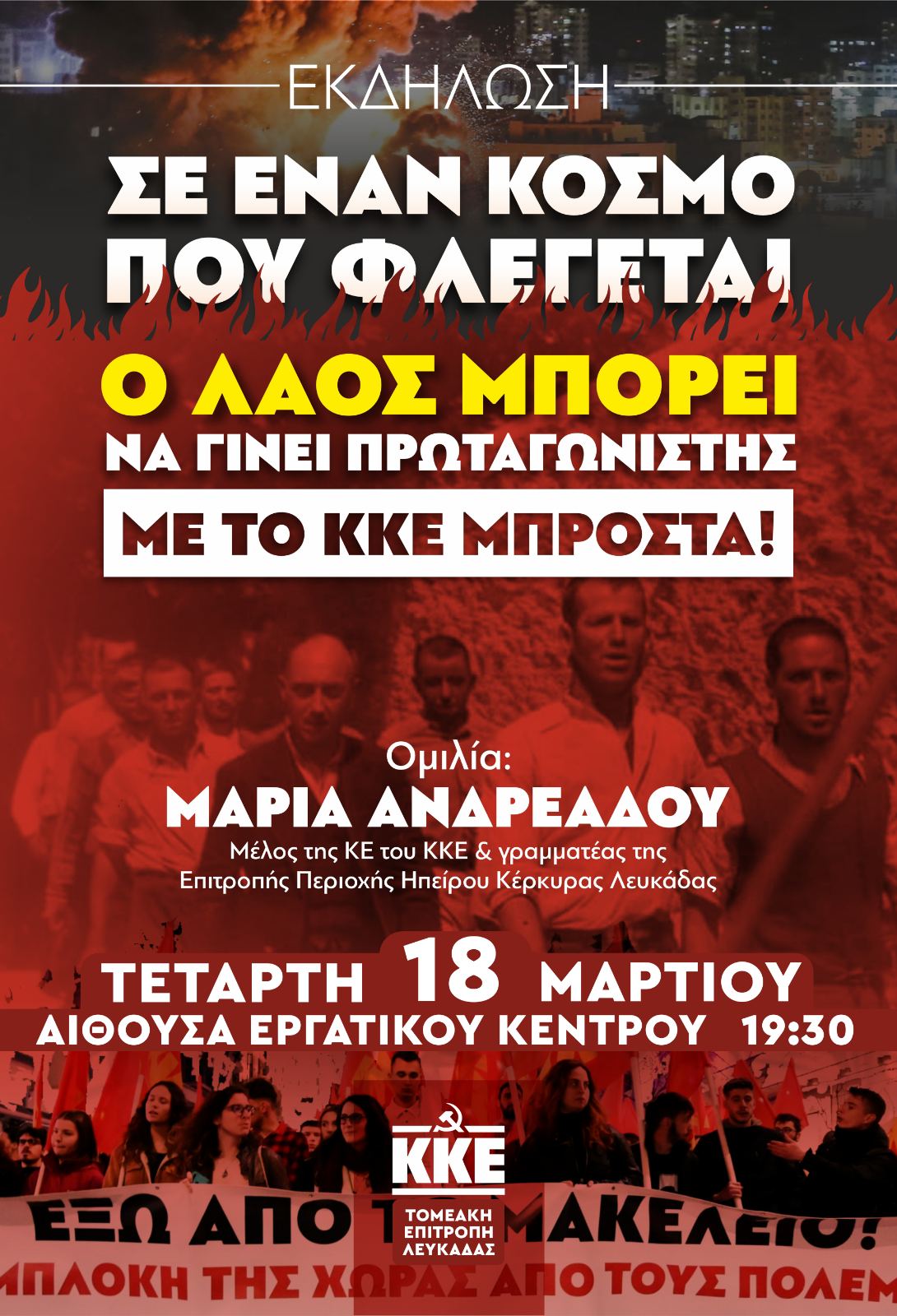 Εκδήλωση του ΚΚΕ στη Λευκάδα: «Σε έναν κόσμο που φλέγεται, ο λαός μπορεί να γίνει πρωταγωνιστής»