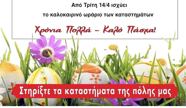 Από την Τρίτη 14 Απριλίου ισχύει το καλοκαιρινό ωράριο των καταστημάτων.