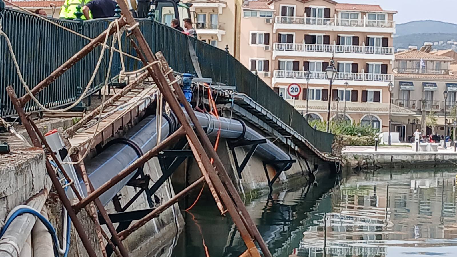 Σε εξέλιξη βρίσκονταν για τρίτη ημέρα, το πρωί της Παρασκευής 17 Απριλίου 2026, οι εργασίες αντικατάστασης τμήματος του κεντρικού αγωγού ύδρευσης που διέρχεται από τη Γέφυρα του Πόντε, στην πόλη της Λευκάδας.