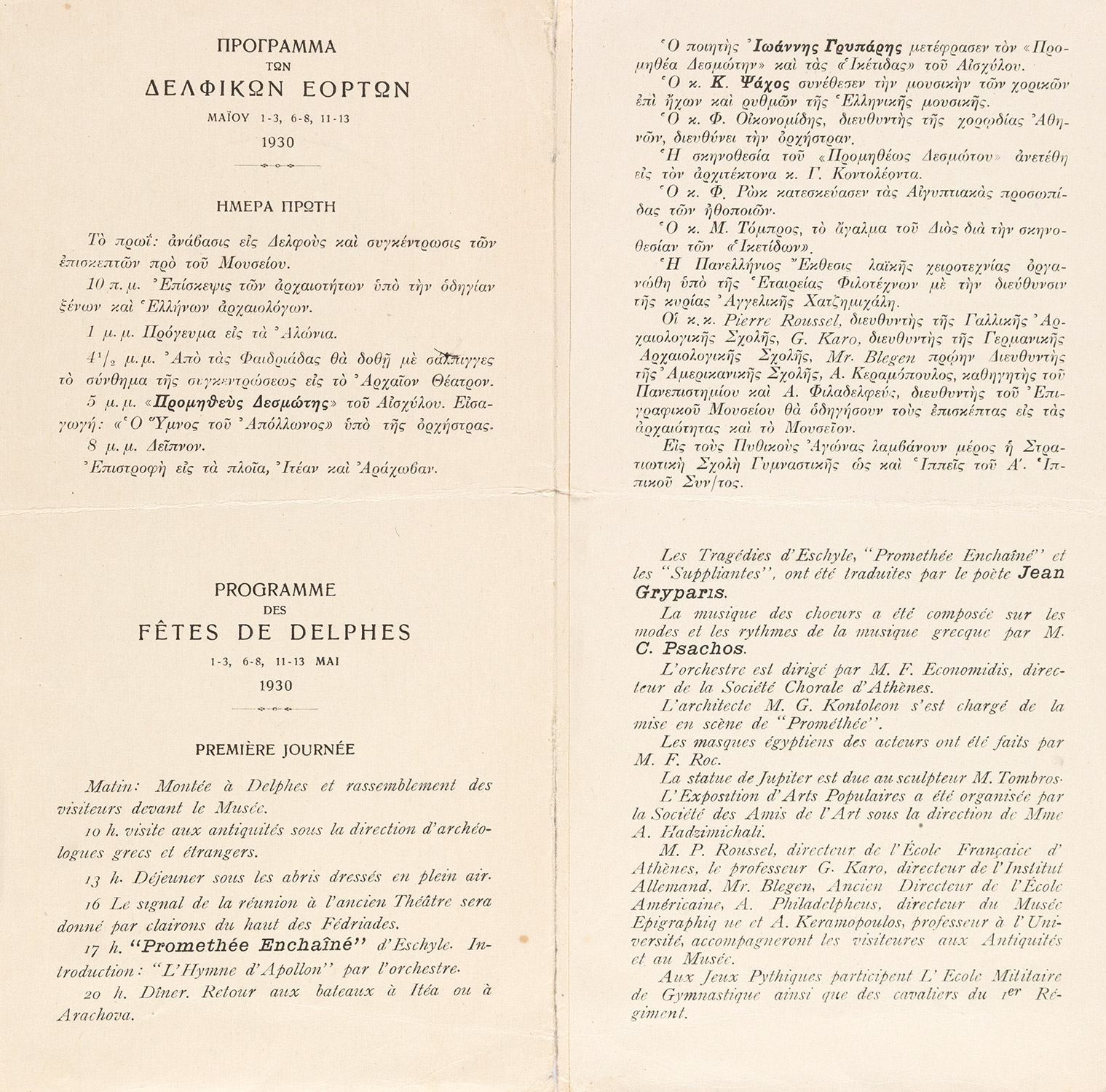 ΔΕΛΦΙΚΕΣ ΕΟΡΤΕΣ — Δελφικές Ἑορτές – Fêtes de Delphes 1930 [Πρόγραμμα τῶν Δελφικῶν Ἑορτῶν, Μαΐου 1-3, 6-8, 11-13 1930].