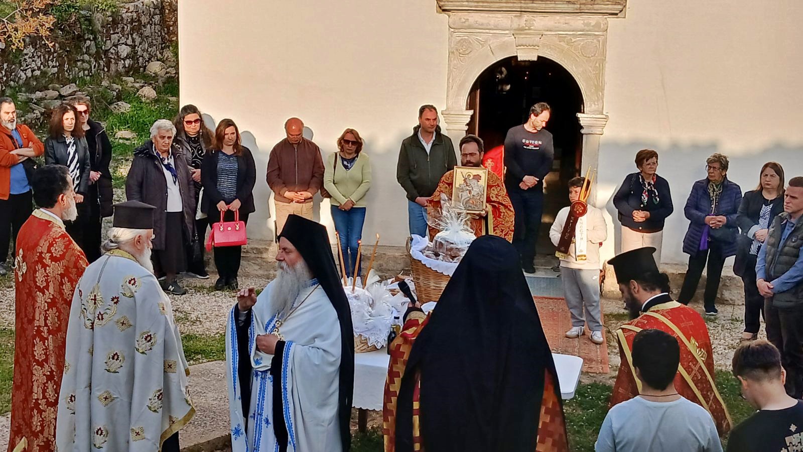 Με κατάνυξη τελέστηκε το απόγευμα της Τετάρτης 22 Απριλίου 2026 ο πανηγυρικός εσπερινός με αρτοκλασία στο ιστορικό μοναστήρι του Αγίου Γεωργίου Σκάρων, χτισμένο σε πλάτωμα στους πρόποδες του δάσους των Σκάρων, στη δυτική πλευρά.