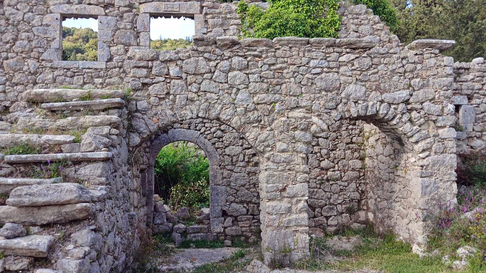 The Monastery of Agios Georgios is located at the foot of the Skaroi mountain. Its foundation dates to the end of the 15th-early 16th century and is a protected monument. During Ottoman (1479-1684) and Venetian (1684-1797) eras, but also in the 19th century, the monastery flourished, acquired great property, the right to exploit the adjacent forest, and became an important economic and spiritual centre of Lefkas. In the 20th century, it gradually declined and was eventually abandoned.