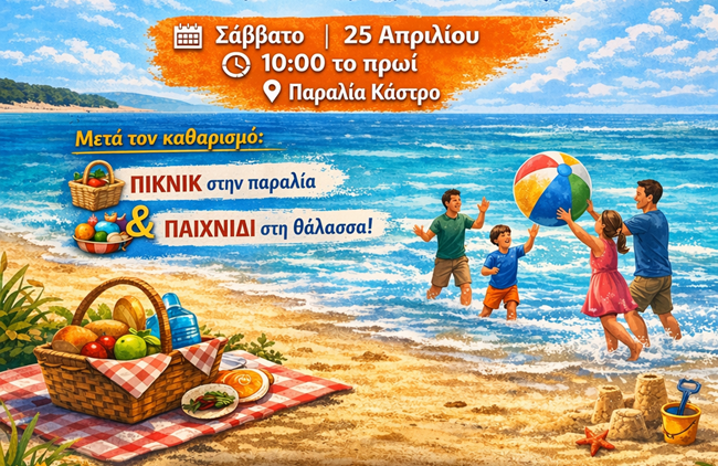 Το Σάββατο 25 Απριλίου στις 10:00 το πρωί, δίνουμε ραντεβού στο Κάστρο για έναν εθελοντικό καθαρισμό παραλίας. Μικροί και μεγάλοι ενώνουμε τις δυνάμεις μας για να προστατεύσουμε τη φύση και να δώσουμε το δικό μας μήνυμα για έναν πιο καθαρό κόσμο.